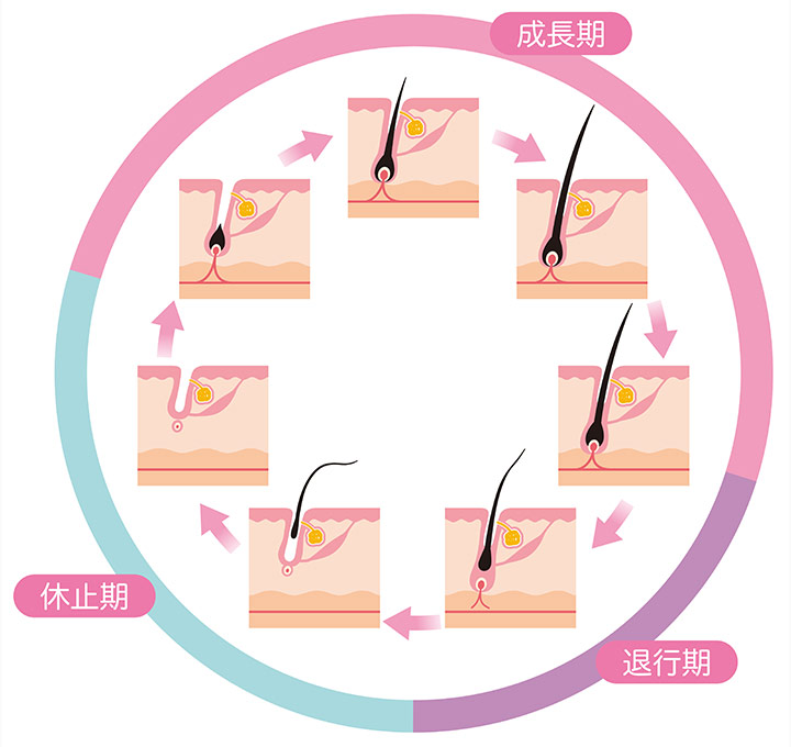 髪の毛は「成長期 → 退行期 → 休止期」を繰り返しています。